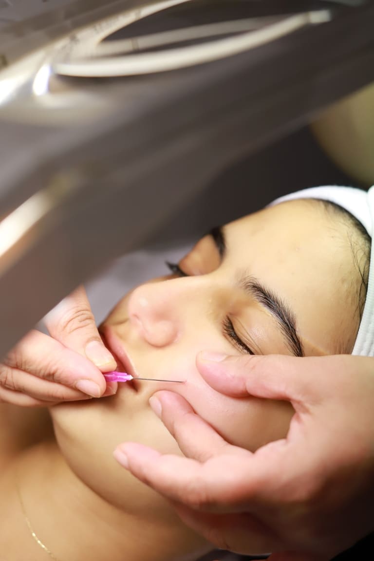 - Huidanalyse en reiniging: De huid wordt grondig gereinigd om onzuiverheden en overtollig talg te verwijderen, waardoor de huid beter kan ademen